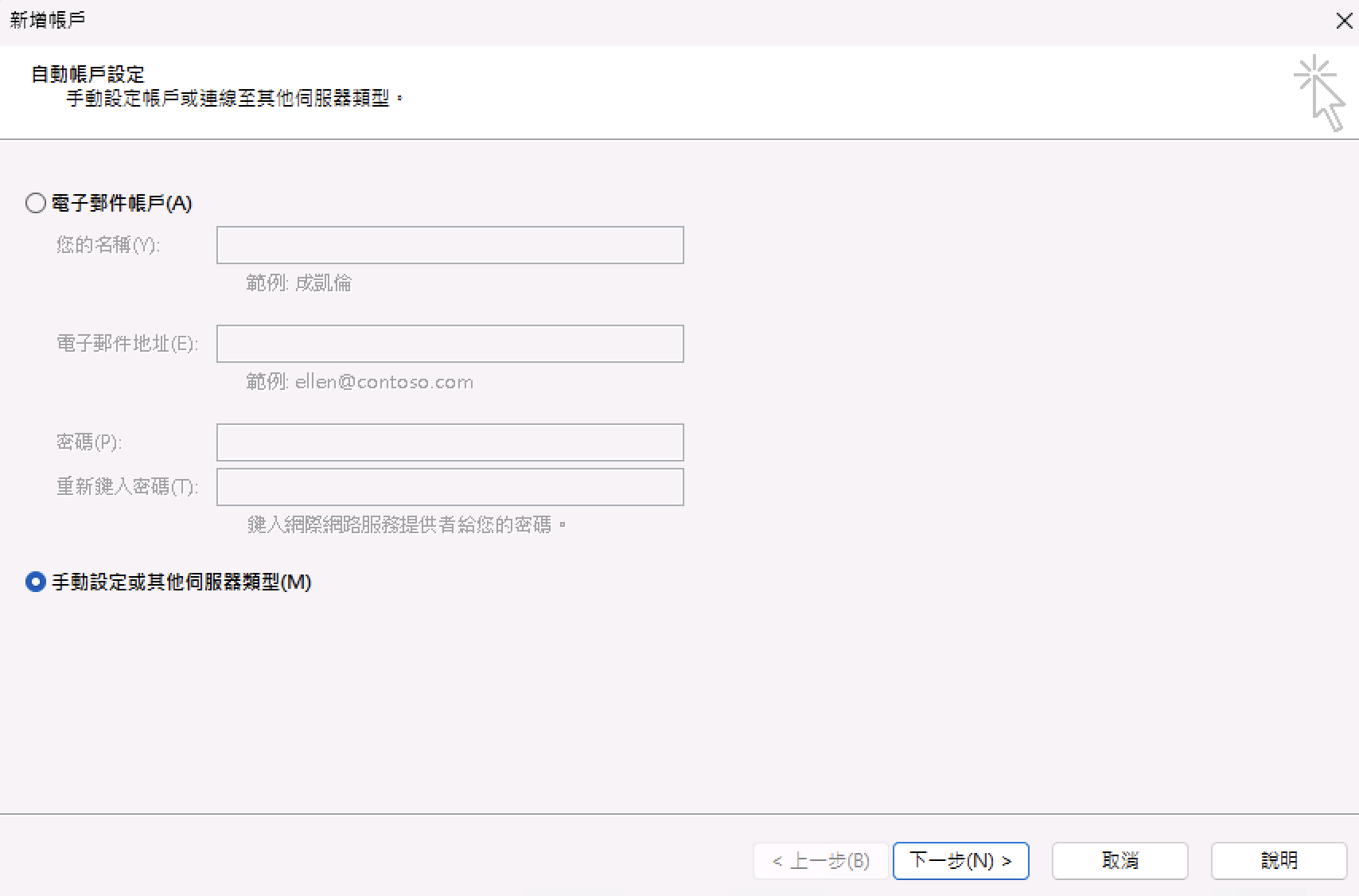 4) 選擇「手動設定」再按下一步