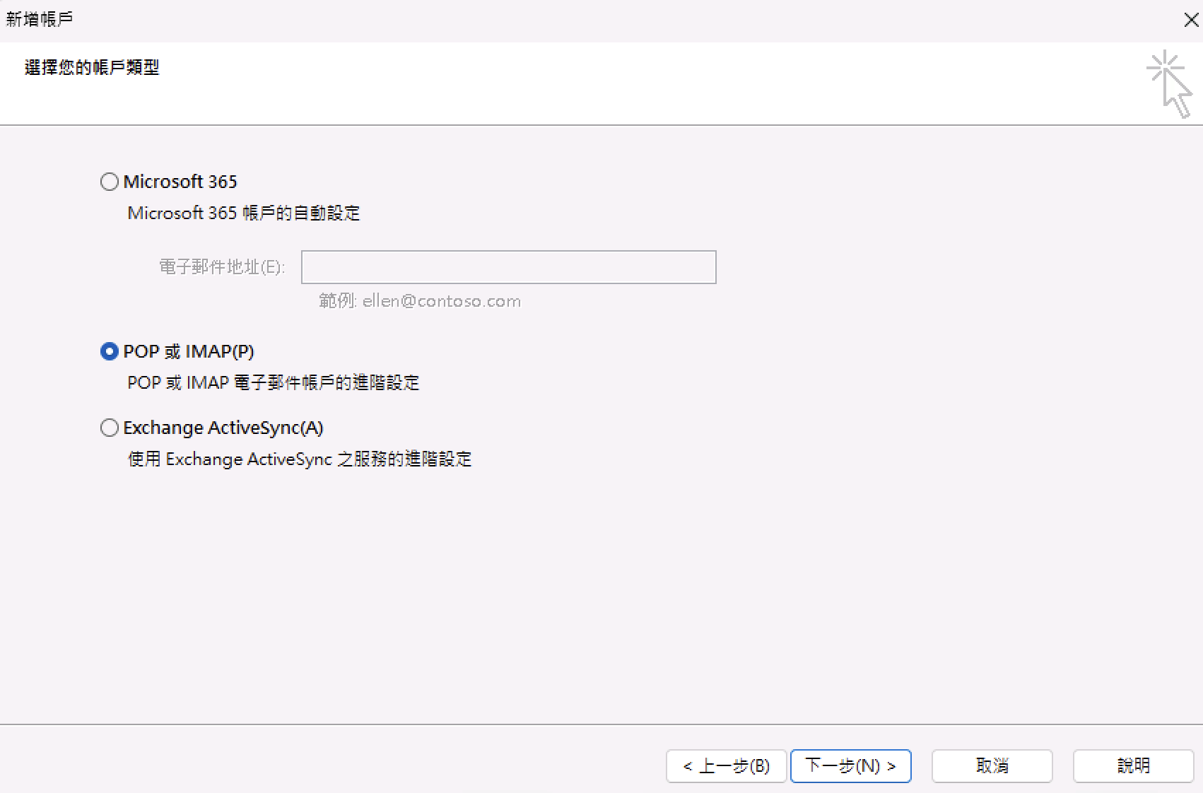 5) 選擇「POP或IMAP」
