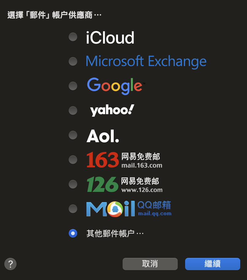 MacOS Mail 電郵設定