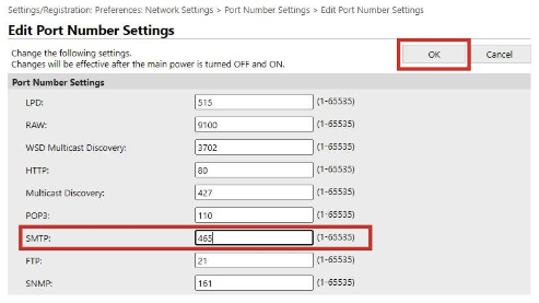 先在Port Setting把SMTP端口由25改成 465 (如果在SMTP設定啟用TLS後還是連不上,可能是掃瞄器或印表機太舊不支換,試試停用TLS並將端口改成587)